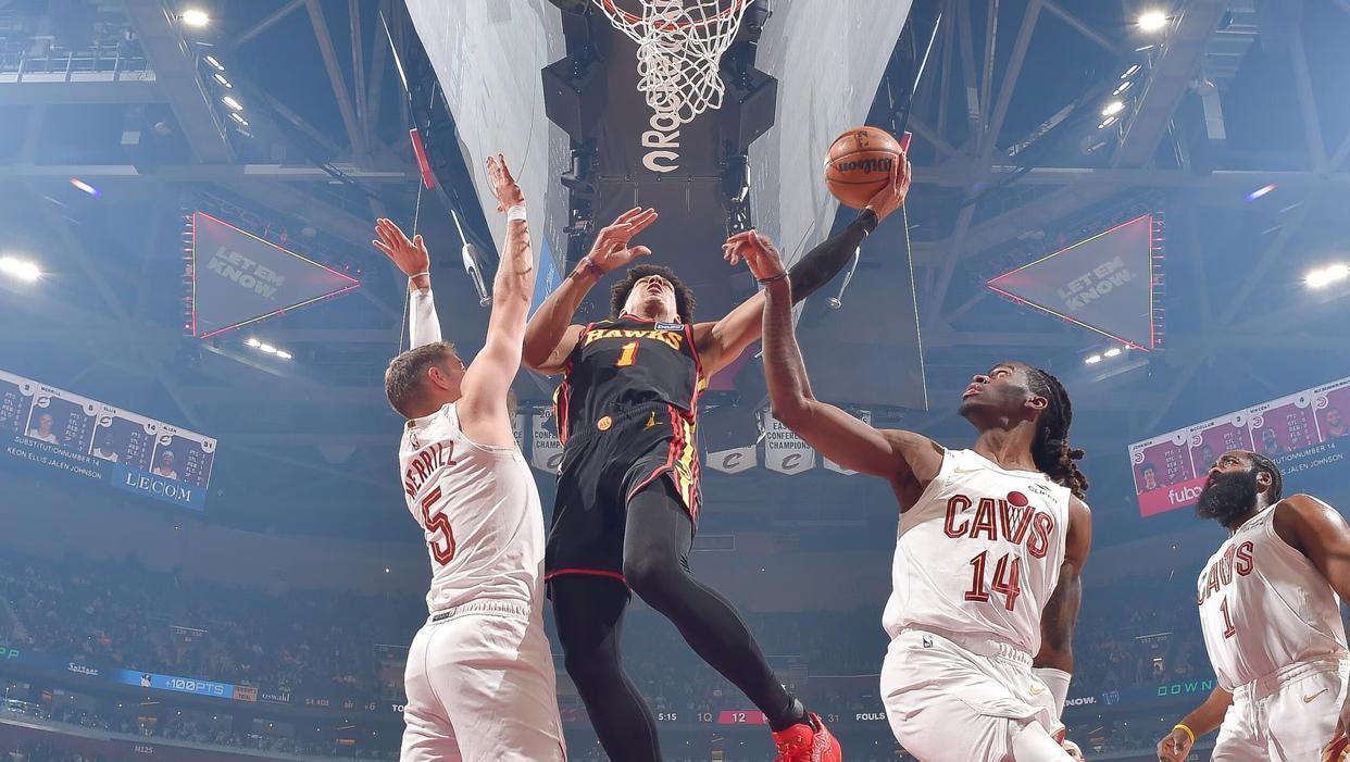 末节决战,莫布里2罚1中,库明加轰进三分球,沃克上篮得分。盖耶大帽米切尔,莫布里跟进补扣得手。施罗德命中2+1,骑士领先18分。杰伦约翰逊2罚全中,盖耶再次封盖米切尔,杰伦约翰逊补篮得分,麦科勒姆跳投得分,阿特金森请求暂停。骑士连续失误,库明加上篮得手。老鹰挑战判罚失败,阿伦暴扣,麦科勒姆、沃克相继跳投命中,哈登外线打铁,阿伦进攻犯规,沃克轰进三分球,哈登被抢断,丹尼尔斯暴扣。